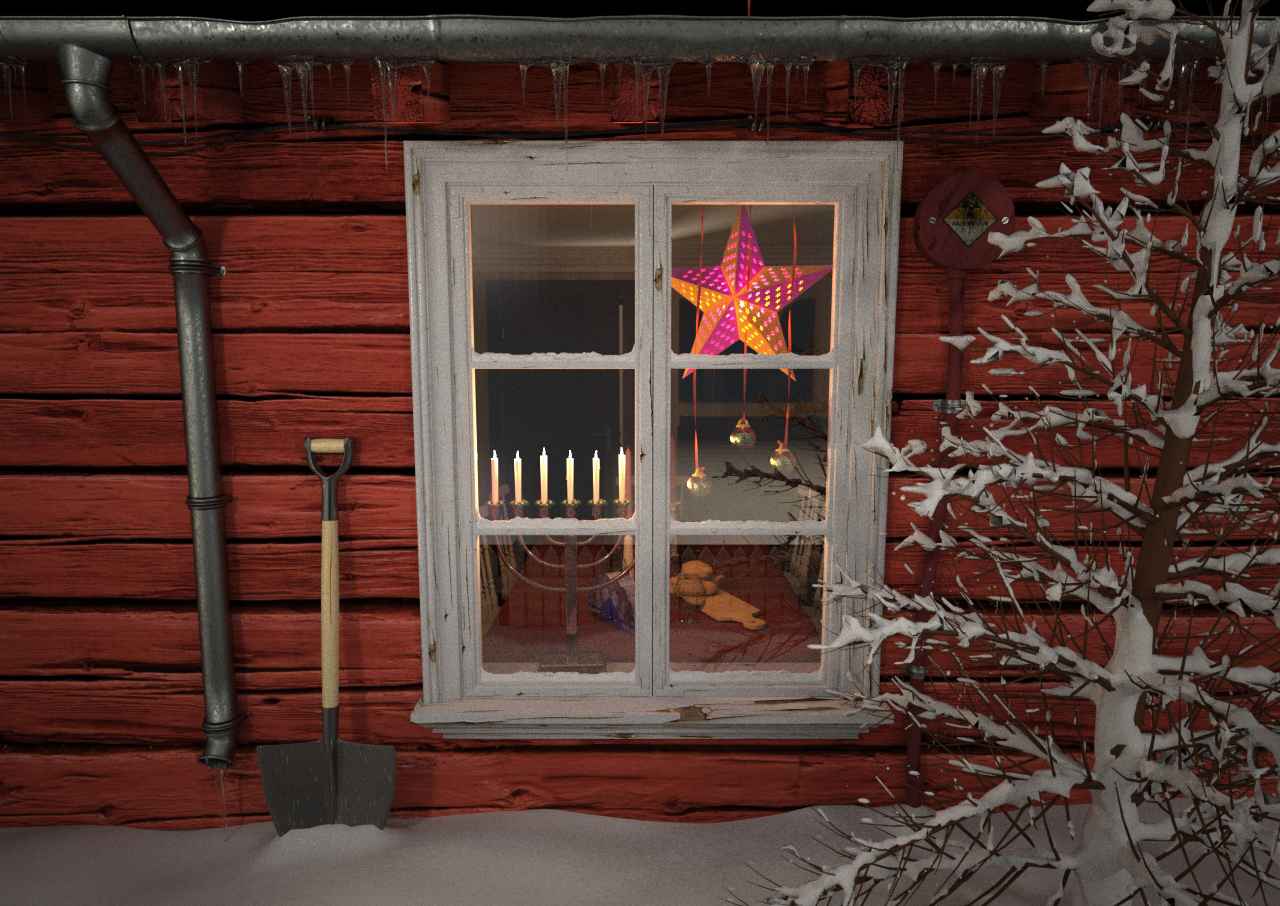 Mi propósito es hacer una Julfönster de una casa en el campo en pleno invierno e intentando captar el espíritu navideño y la sensación cálida de dentro de las casas en contraste con el duro invierno en el norte de Suecia.