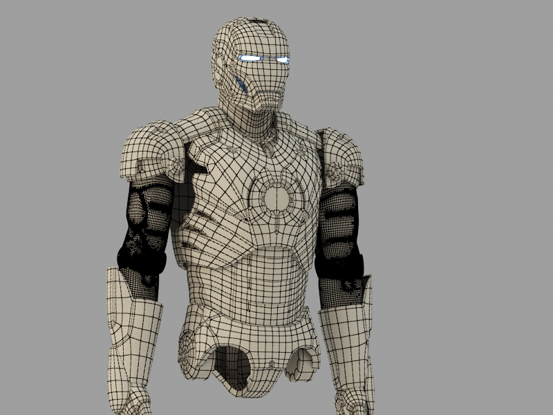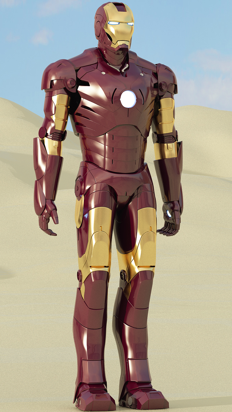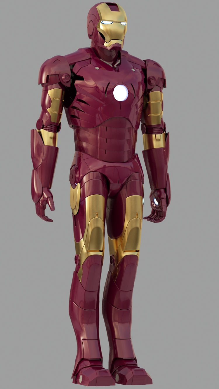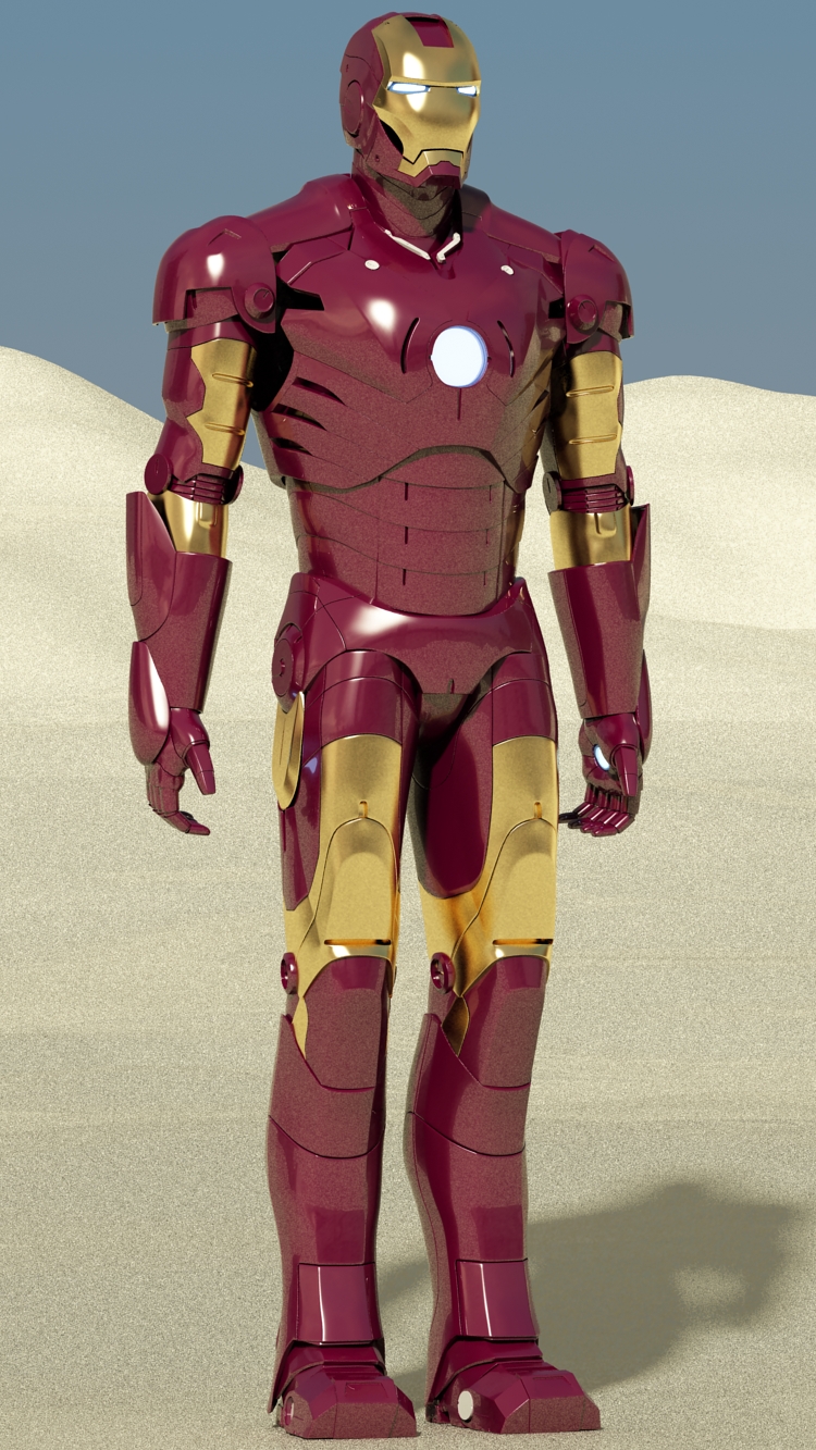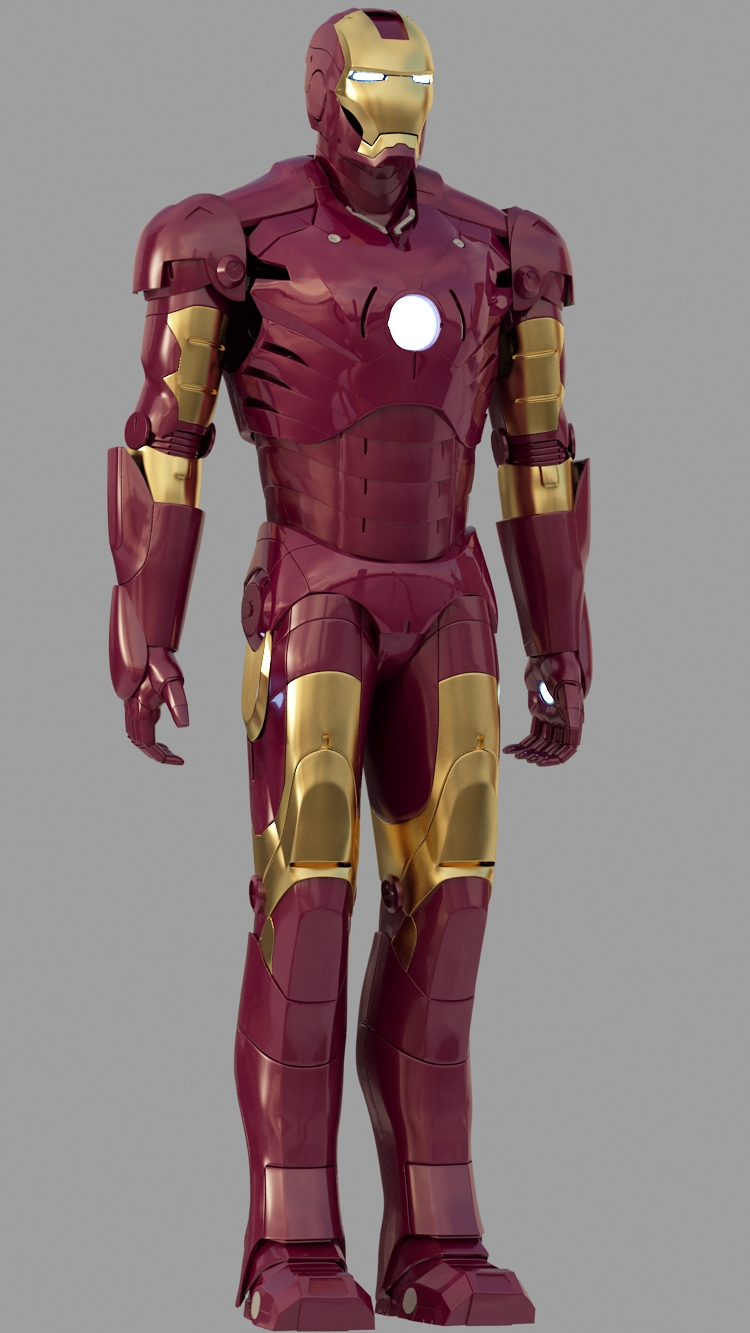 Bueno después de avisarlo, aquí está Iron Man, mi versión de el, lo más parecido posible al de la película, lo he hecho con blueprints del Concept Art y como no es el diseño de la película, he tenido que ponerme a hacer capturas del DVD y ponérmelas al lado y ir mirándolas para ver lo que cambiaba y hacer también bocetos, una locura, llevo con el 3 semanillas, uf y me quedan las manos, y las piernas, ya iré colgando avances de las piernas cuando vaya más avanzado, en principio no quería modelar, solo que muestro en pantalla, pero ya que lo tengo así vale la pena terminarlo entero. Es probable mente mi proyecto más ambicioso, por la cantidad de detalle que he querido meterle y la complejidad, porque que difícil es modelar objetos metálicos y más con forma humana, bueno sin más dilación os dejo el modelo para que le echéis un ojo.