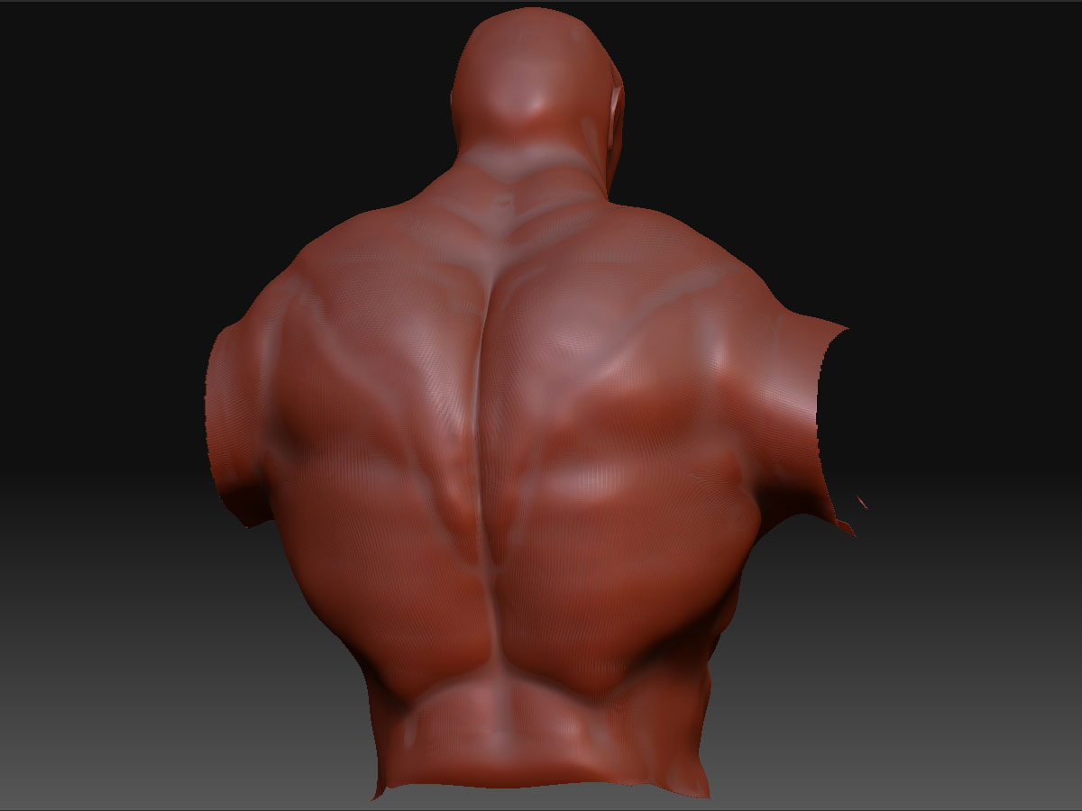 Aunque cuando comienzas a ver la exageración en la parte del trapecio y en el lumbar de la espalda, se comienza ver muy extraño y hay es donde se ve el desacierto de la topología en todo el cuerpo, (solo opino) la cara parece como de un abuelo por los ojos y la boca tan arrugados, y le falta detalle al pantalón.