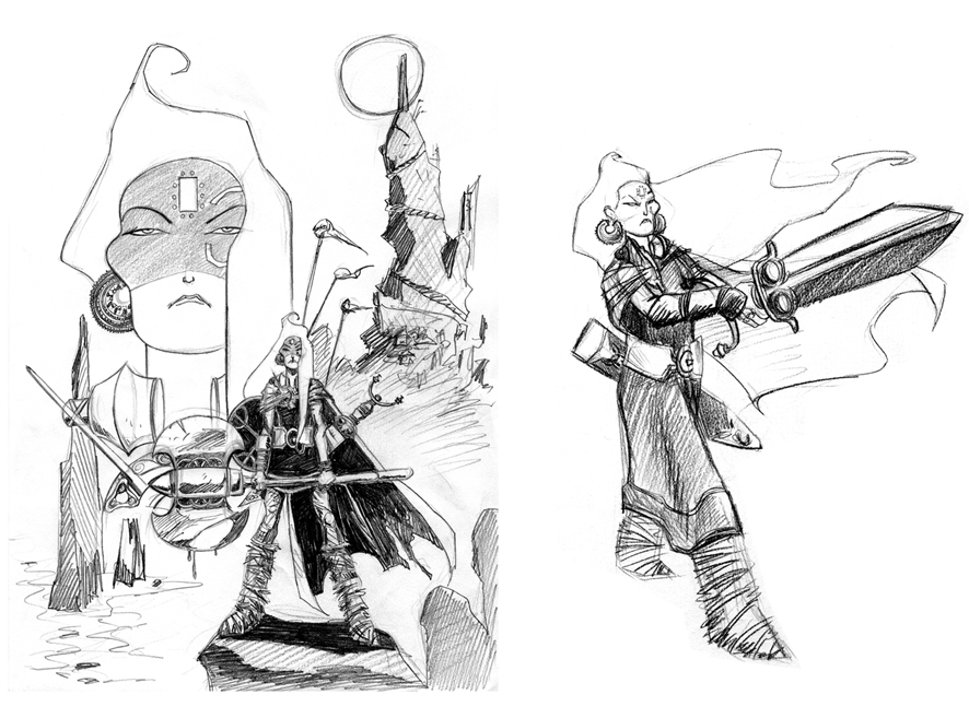 Una sinopsis, y realizo un par de dibujos para comenzar a tener referencias gráficas.