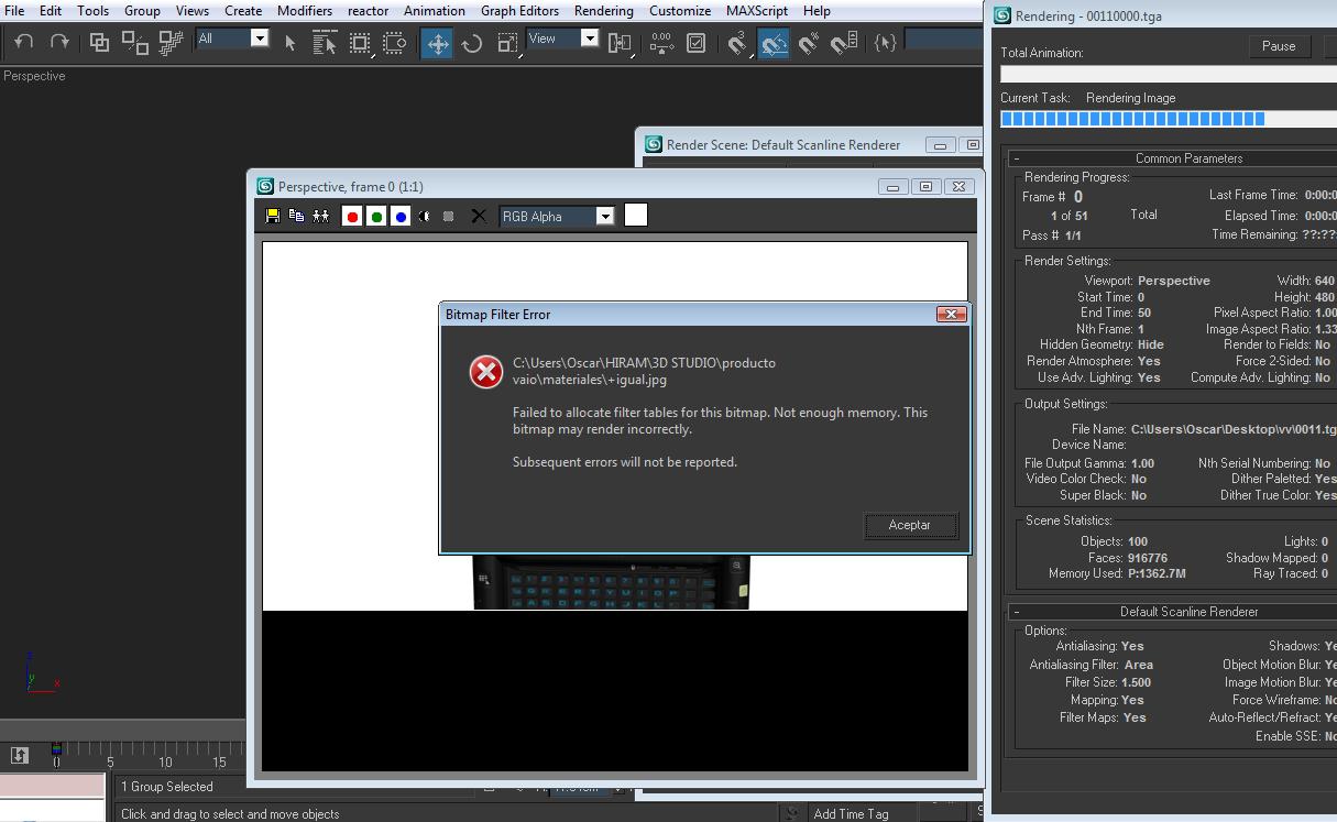 Hola, quería consultar por un problema que tengo con el renderizo, me tira un cartel de que no encuentra un mapa o algo así, pero el mapa esta donde debería y algo respecto con memoria insuficiente, pero tengo 2 Gb de Ram y estoy usando el motor por defecto, aquí les adjunto una fotografía del cartel de error. Si alguien me puede decir cómo solucionarlo le estaré agradecido, y también quería preguntar cómo puedo asignarle más Ram al programa, ya que, con el motor estándar en la ventana de render no tengo la pestaña de procesos y creo que no está usando toda la Ram que podría. Muchas gracias.