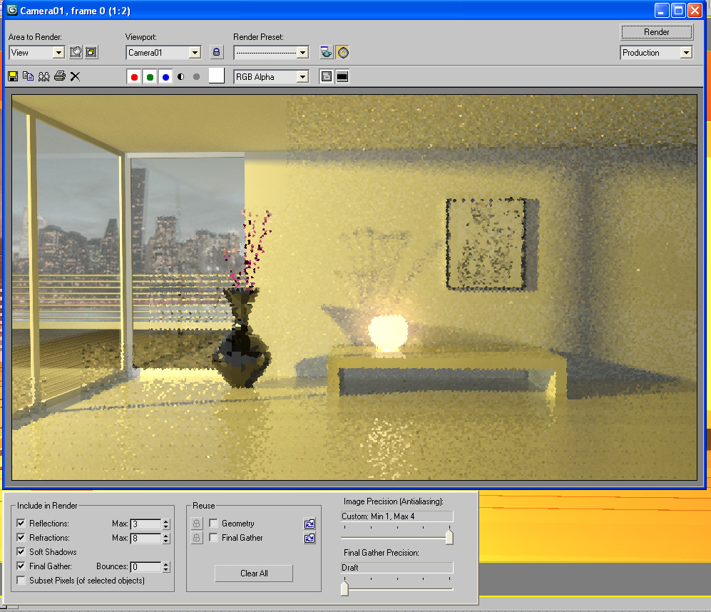 Hola. No sé si es normal, pero cualquier render con Mental Ray se me va a horas, es eso normal? Creo que no. Lo parámetros que toco en el render no son muchos, activo el Final Gather, la iluminación indirecta y el método en box 1/16 todo 4.