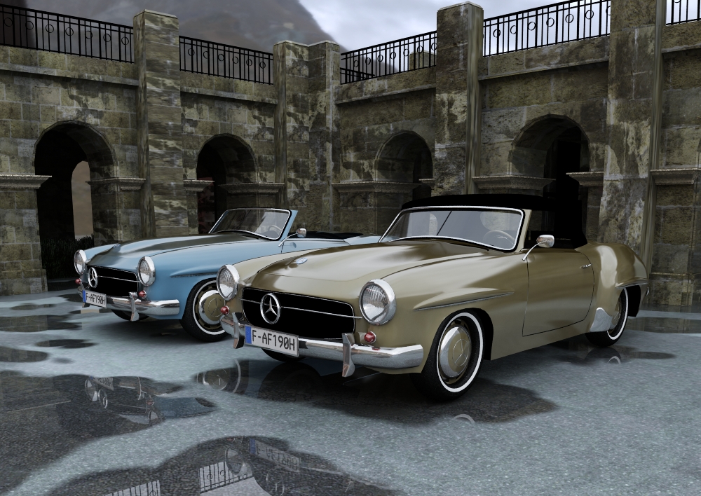 El entorno te lo tendrías que trabajar un poco más para darle algo de realismo, el modelo de los coches está bastante bien, pero lo que me extraña es que los dos estén matriculados con el mismo número de placa.
