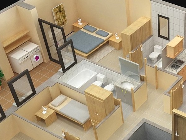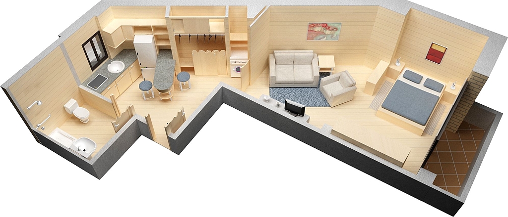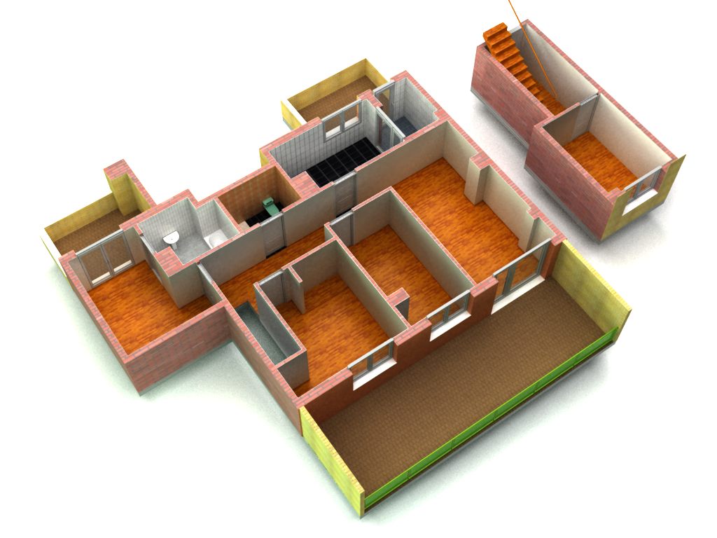 Hola. Estoy modelando una perspectiva de una vivienda. Es mi primer modelado de este tipo (y el segundo en serio). No he puesto los muebles todavía ni aplicado algún material, pues es más un ejercicio que me he puesto yo mismo para practicar iluminación (de la que no tengo ni idea) y probar cosas nuevas.