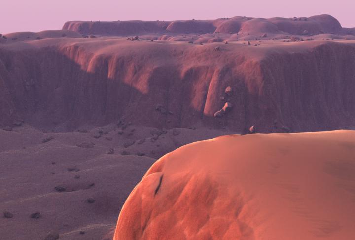 Estoy aprendiendo a usar Mental Ray, así que, decidí renderizar la escena con él, y es aquí donde me surge un problema. El material no se aplica correctamente al terreno (la textura de estira en los laterales del acantilado), como si no hiciera caso de las coordenadas de mapeado, que si funcionan bien al usar Scanline.