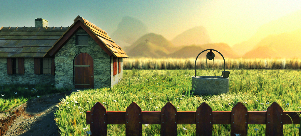 Que buen de render. El césped te ha quedado impresionante, parece un campo justo cuando empiezan a crecer las espigas de trigo. Muy chulo, enhorabuena.