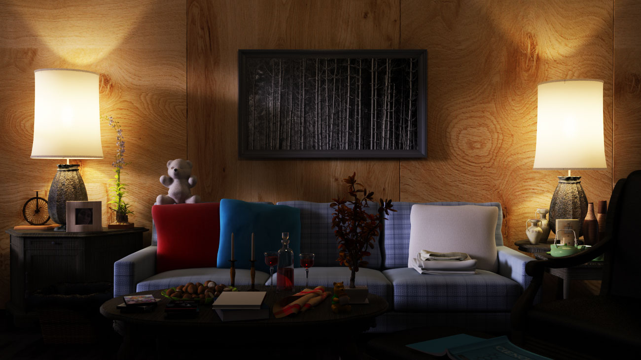 Mi primera crítica y breve. Imágenes muy convincentes y me gustan, solo dos detalles. El reloj marca la misma hora en todas, supongo que, será un problema de pilas. El sofá en la última imagen, parece iluminado por una luz demasiado fría, le falta poco de calidez.