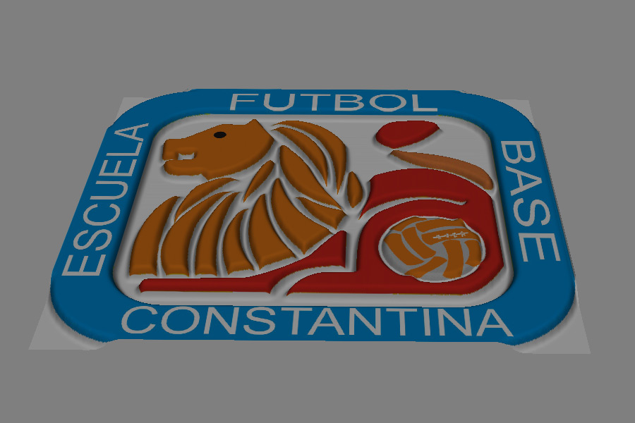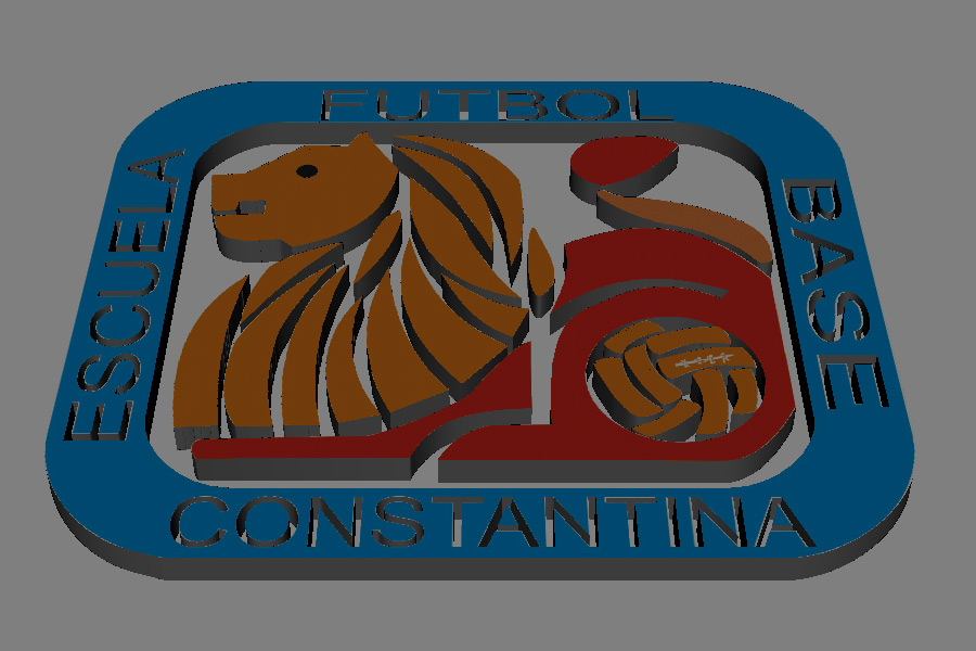 Ah además quieres animación. Pos, cobro a 50 euros, el keyframe. Si me pasas el logotipo en Vector te lo hago. Y dime cómo quieres el tema de las letras, si troqueladas, fresadas, sobresaliendo o simplemente mapeadas. Lo mismo con el círculo que corresponde al balón.