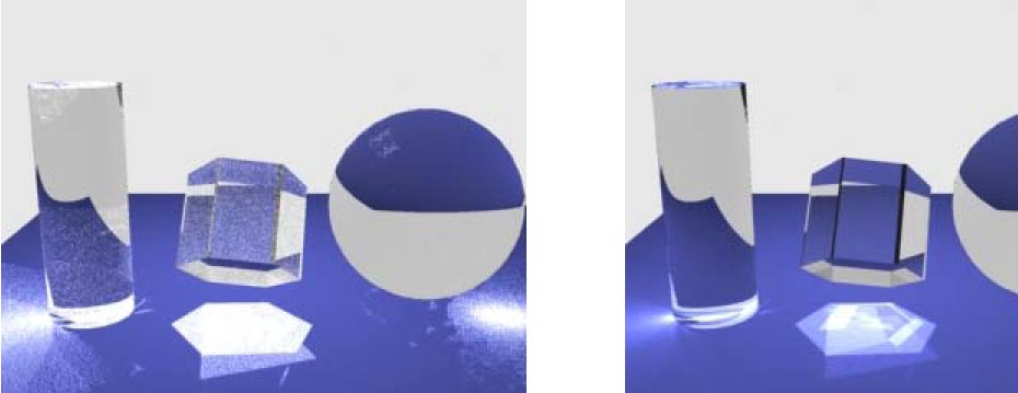 Texture antialiasing. Este ejemplo muestra el antialiasing de textura que ejerce el valor de color threshold en two-level y adaptive subdivisión. Por defecto Vray suaviza todo en la imagen, incluyendo las texturas.