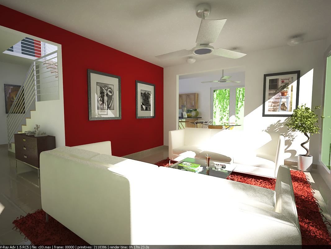 Saludos.s, pues veo bastante buena la escena, le haría caso a lo de la alfombra si se ve medio rara, y debes ajustar la iluminación para que no te que me tanto revisa los parámetros para que te salga más nítida, pero en general me gusta mucho, se parecen a mis renders jdeberías revisarlos a ver qué te parecen http://rensorenders.blogspot.com/ espero que me dejes un comentario suerte.