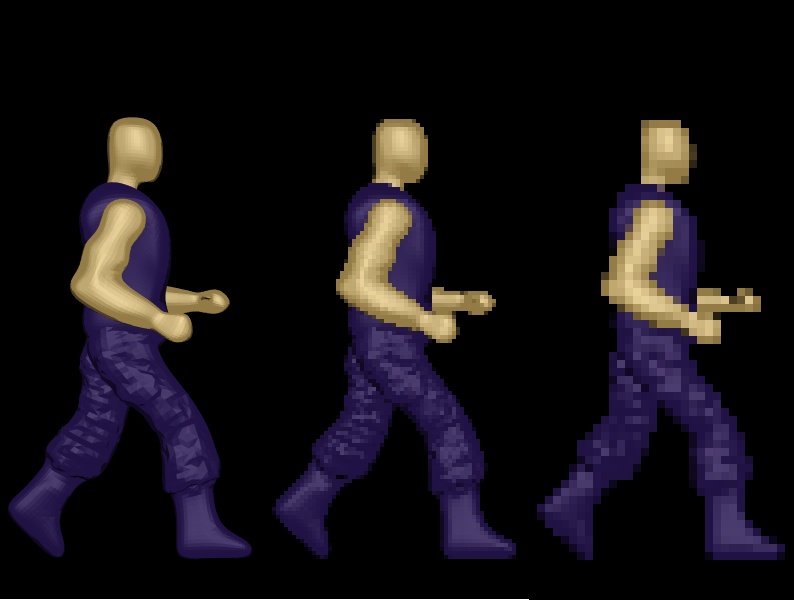 Sprites como los que se utilizan para un programa llamado RPG Maker XP, por ejemplo:
