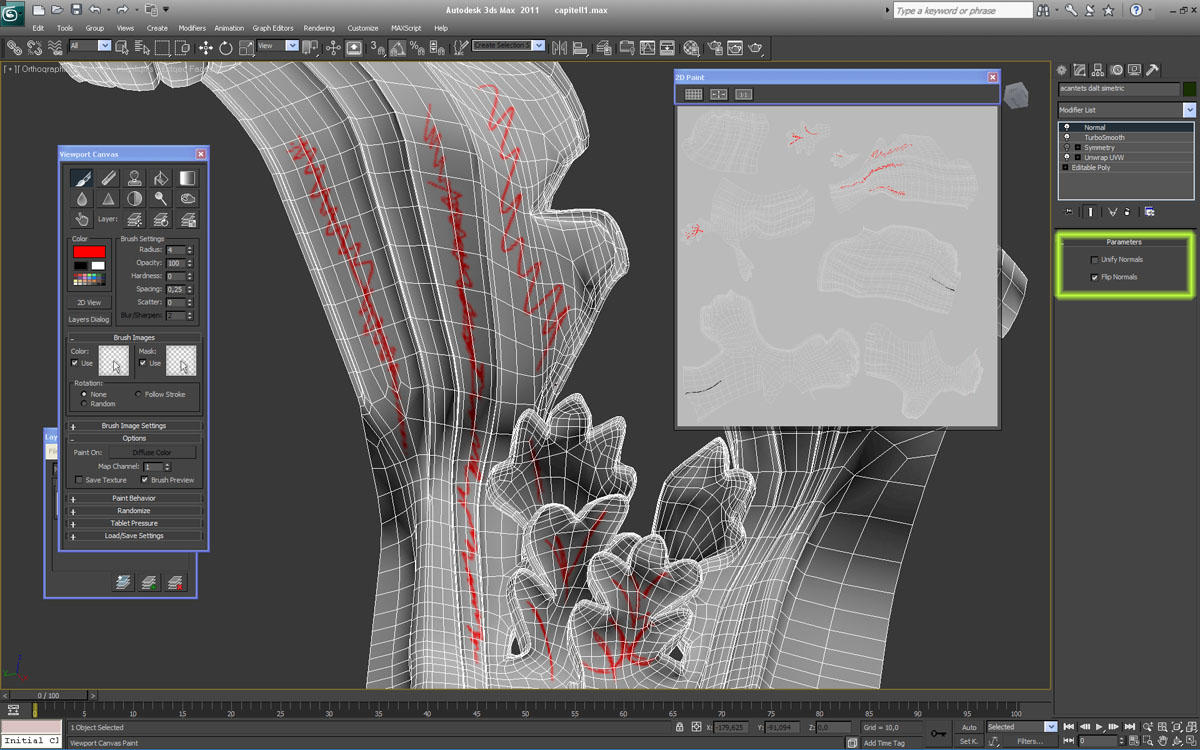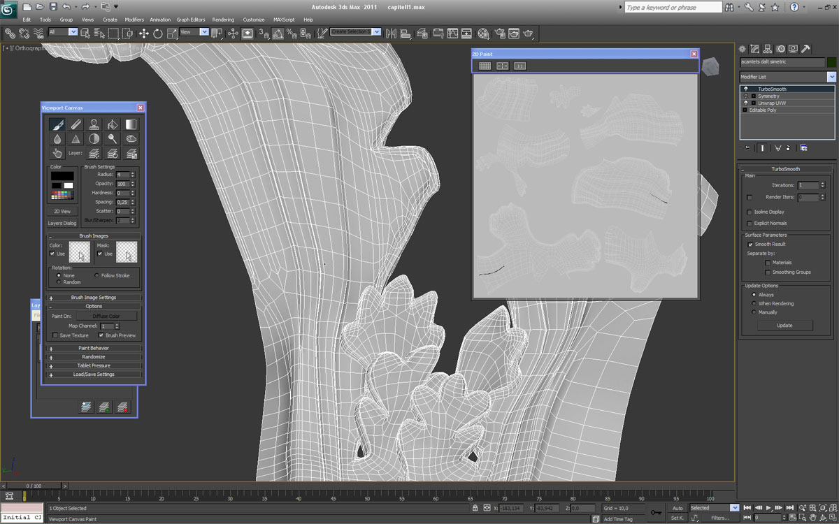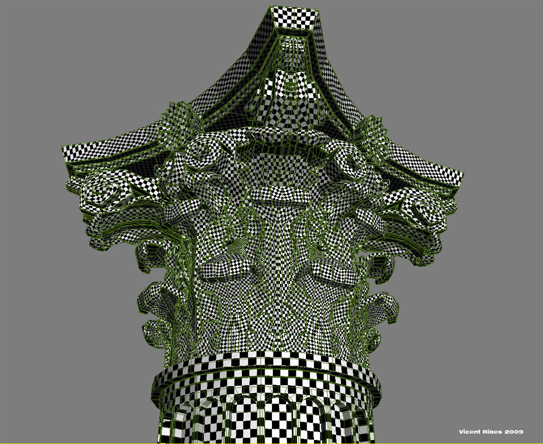 Hola. Estoy modelando un capitel corintio y como no me atrevo a meter más polígonos, los nervios de las hojas de acanto pensaba hacerlos por material o desplazamiento (igual es que ya sobran muchos polígonos, pero no he sabido hacerlo mejor) l.