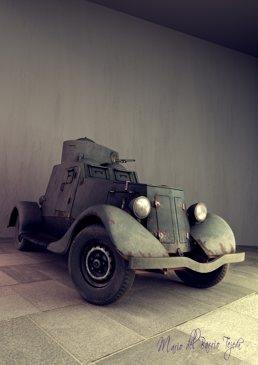 Me alegra que os guste, sobre todo lo del tiro de cámara, que me trajo algún que otro quebradero de cabeza. Este modelo hice algún tiempo y el objetivo era crear una buena textura de suciedad desconches y demás. Gracias por pensar que las texturas están de 10 Infograph.