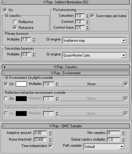 Hola amigos. Expongo mi problema. Estoy haciendo el exterior paredes se ven verdes. Comprendo que es porque la luz rebota del césped, pero ¿cómo puedo solucionarlo? Os dejo los parámetros que he utilizado. Estoy utilizando Vray Sun + Vray Sky +Vray Physical Camera, 3d Studio 8 y Vray 1.5 rc3. También hay no sé porque me pasa que la escalera es de hormigón y sale muy quemada. Me podéis ayudará muchas gracias.