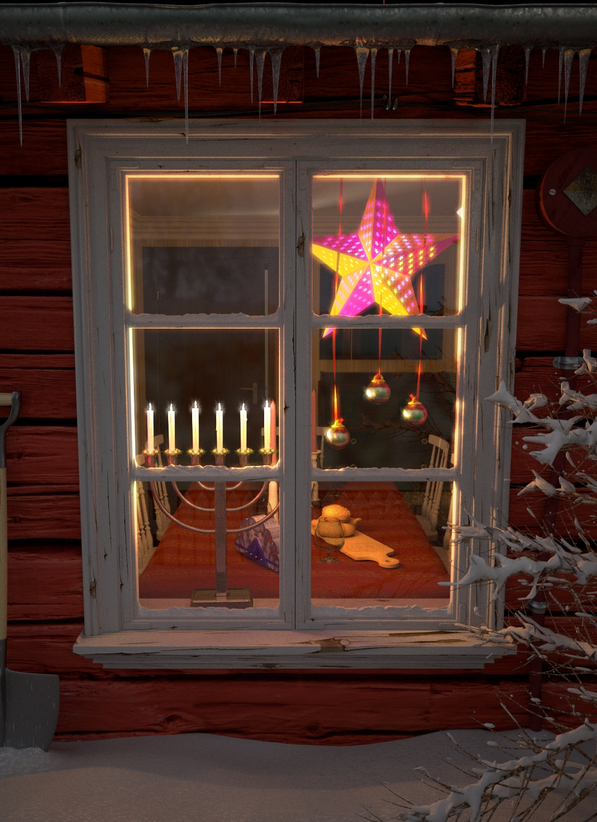 La explicación de la imagen es la siguiente. Yo ahora mismo vivo en Suecia, aquí todo el mundo tiene por costumbre celebrar el advent (advenimiento de cristo), ello empieza a celebrar la navidad creo que es el día 4 diciembre hasta el día 7 de enero, durante todo este tiempo es costumbre decorar las ventanas que dan al exterior con el típico adventljustaker (candelabro de advent en español), mucha gente también coloca adventstjärnar (estrella de advent) en la ventana, ambos o incluso más cosas.