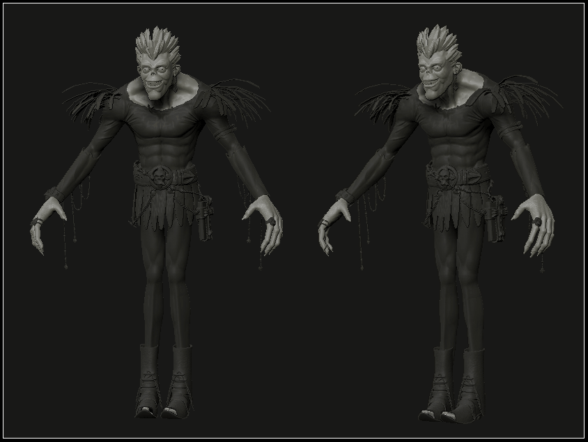 Está quedando cada vez mejor (debo reconocer que al principio no me decía nada), y el último update es una pasada. Lo que sí me salta a la vista es, como ya te habían comentado, la pose. Más que un travelo, a mí me parece como que se está meando y te quiere abrazar a la vez (no te lo tomes a mal, es una opinión-broma). Parece como si tuviera la espalda un poco torcida, como si tuviera una chepa o algo, aunque también podría ser así el personaje ya que no estoy muy puesto en esa serie.