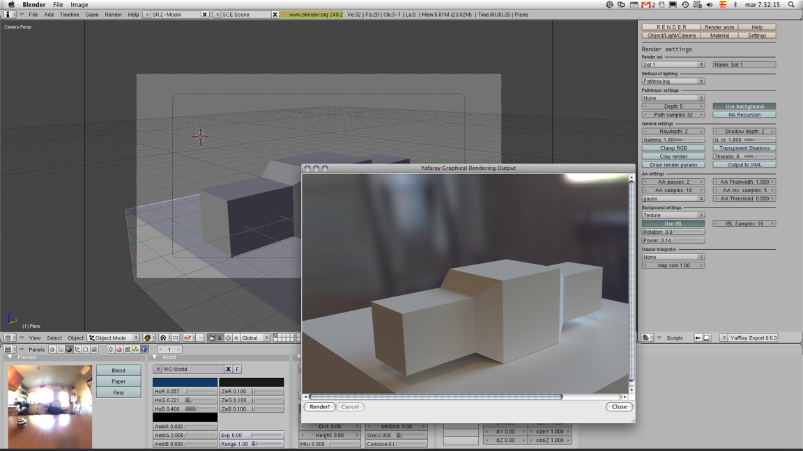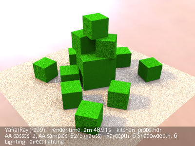 Hola a todos. Estoy practicando con la iluminación con mapas HDRI en el motor Yafray de Blender. Lo máximo que hay en internet sobre el tema es este mensaje en Yafray y las maravillas de Enrico cerica, además de tutoriales desfasados vamos, que poca cosa.