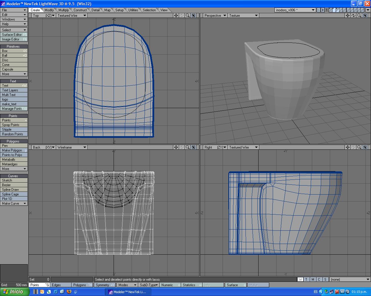 Posdata: el bidé tiene además parte de la geometría que pueda molestar para hacer este tipo de operación, y es la parte de la panza interna del bidé, es que, si saco esos poly extras pierdo la curvatura del modelo.