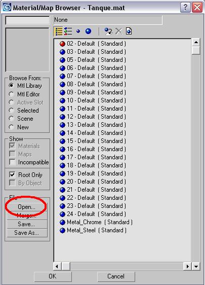 Luego abrís el otro archivo y en el buscador de mapas/materiales vas a mtl library y vas a abrir para abrir el archivo (*.mat) que guardaste. Luego ya tienes los materiales en tu escena y los seleccione uno a uno y los aplicas.