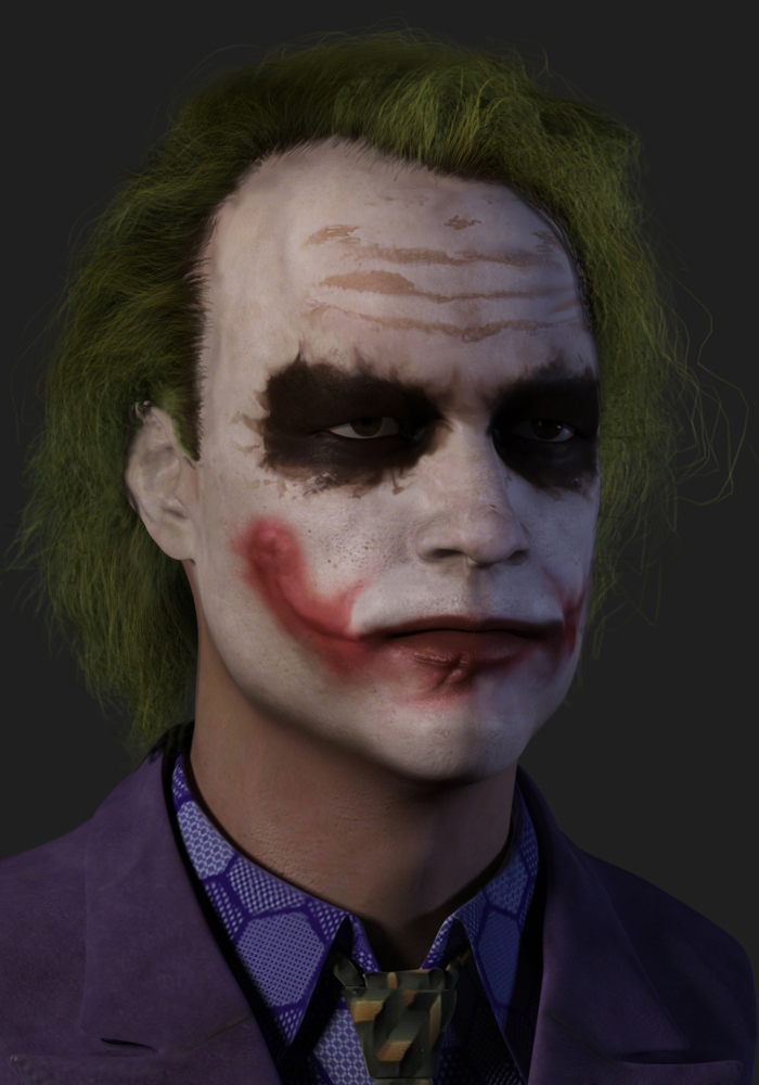 Aquí está por fin mi último y cansino proyecto, después del Joker que hice este verano para aprender a modelar en ZBrush y no quedar contento con el resultado, sorbe todo por el pelo que no pude hacerlo en 3d, me propuse como reto hacerlo de nuevo desde cero, aprender a texturizar en condiciones y hacerle un Hair como dios manda, el texturizado todavía está pendiente porque lo veo mejorable, pero el Hair más o menos estoy contento, respecto al modelo, le he hecho tantos cambios para verlo como yo quiero verlo bien, que ha habido momentos que me he desilusionado porque no encontraba el parecido total al personaje, y me frustraba, pero bueno si he llegado al nivel que más o menos quería, así que, sin más preámbulos, he conseguido lo que me propuse, terminado queda.