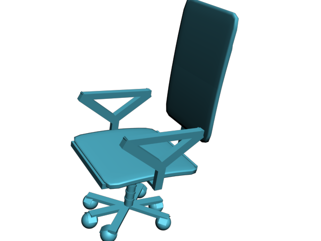 Bueno, mientras espero consejos para mí otro diseño, la estantería de libros (ver aquí), decidí modelar tranquilamente una silla giratoria, y os dejo el primer borrador para que me digáis que podría mejorar.