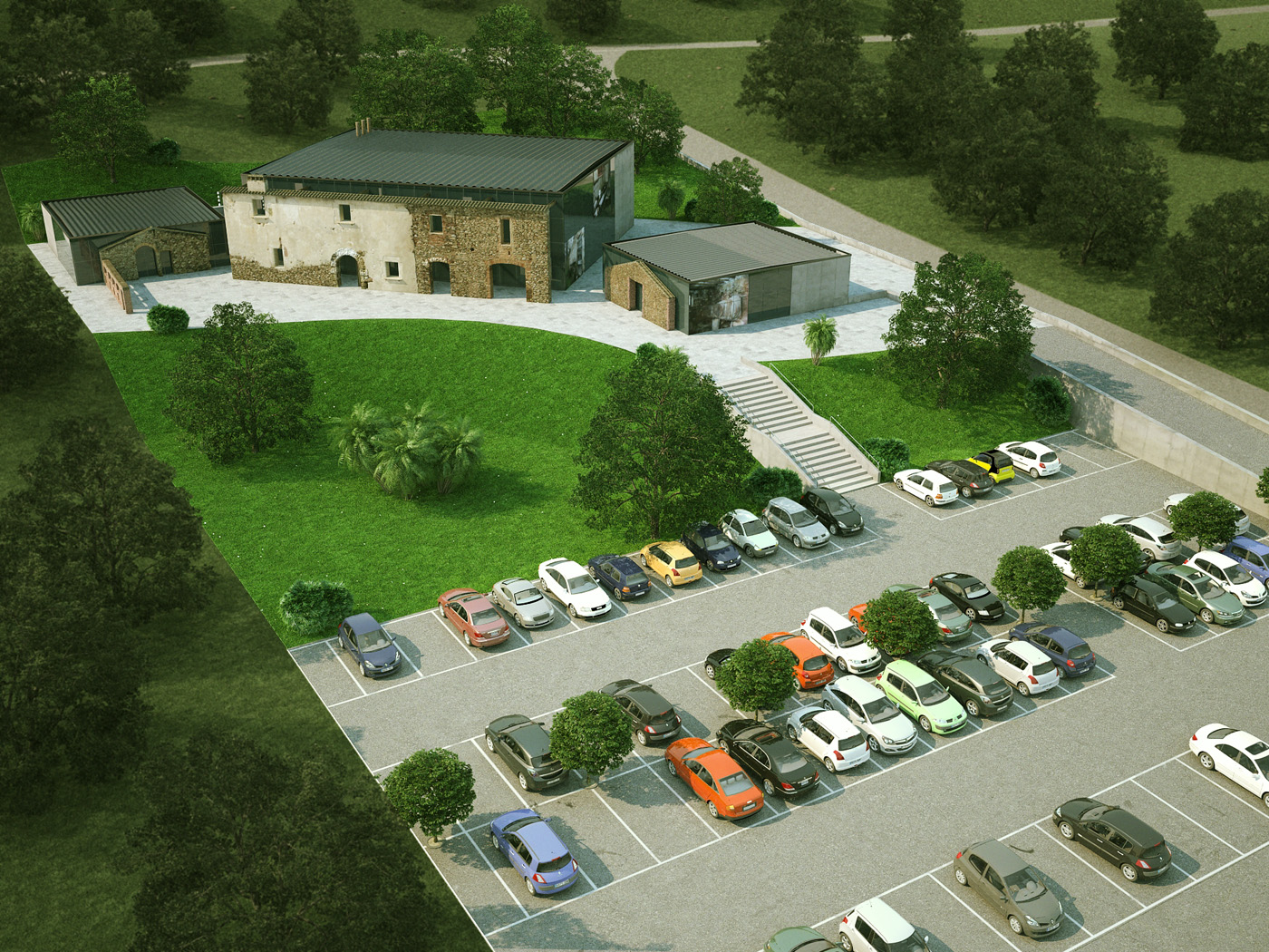 El proyecto consiste en crear una nave central grande y dos auxiliares, con una reconstrucción en la parte delantera de lo que era la Masía, y combinar la envolvente del edificio con vidrio y imágenes muy grandes de lo que era la Masía original.