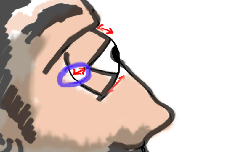 No sé cómo está el eje de los párpados, pero me da la sensación de que esté como en el dibujo azul.