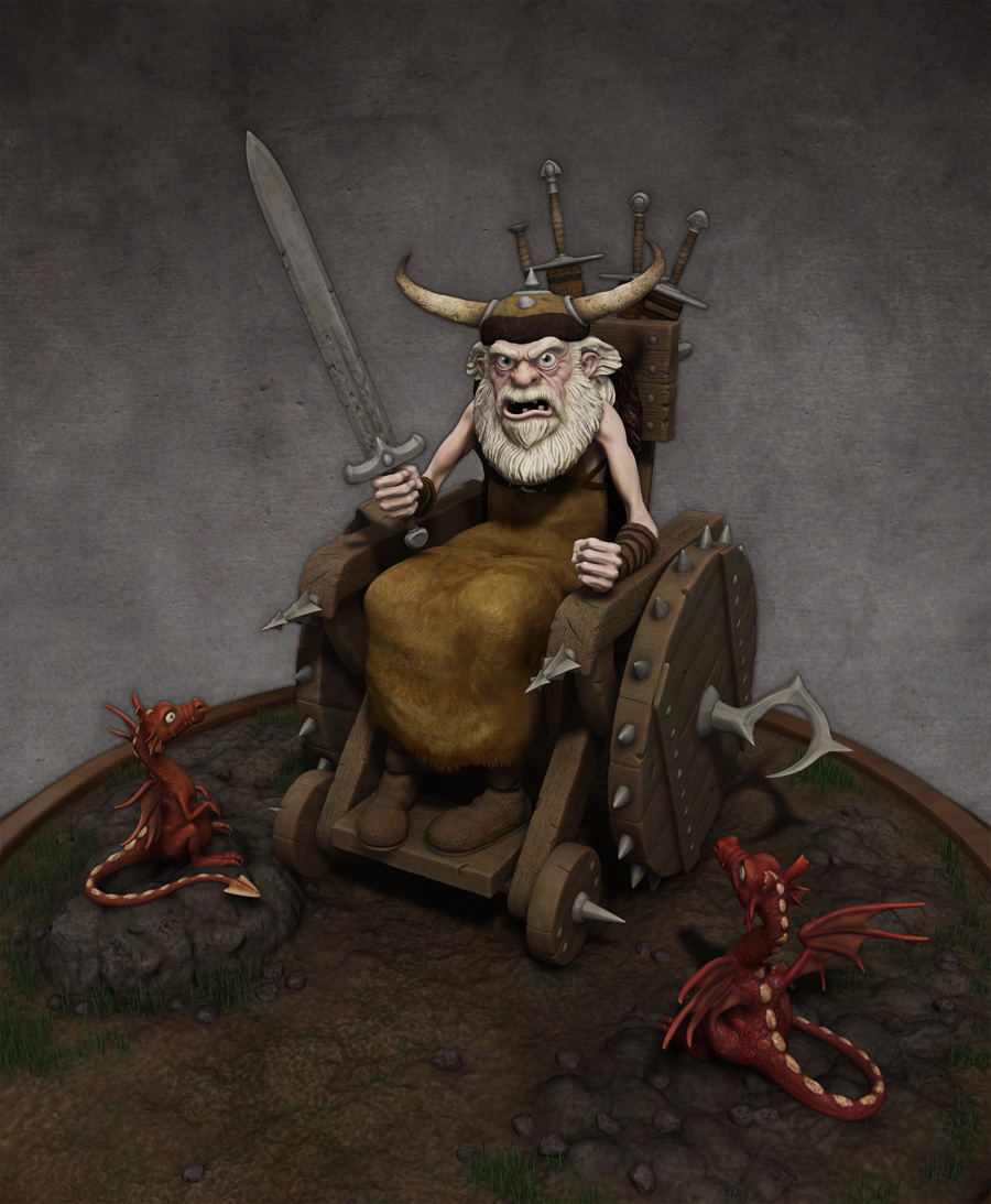 Hola. Terminé esto hace algún tiempo, pero todavía no lo había colgado por aquí. El tipejo en cuestión es Mad Hamish, un personaje de la saga de libros mundodisco escritos por Terry Pratchet. Lo podríamos definir como una especie de bárbaro de la 3a edad montado en su silla de ruedas de combate.