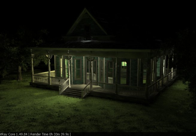 Tal vez tendría que tener hasta menos luz la casa, para que se note más abandonada o desolada, me trae varios problemas los models para max por que el Rhinoceros se maneja con Nurbs, entonces aparecen cosas como esa luz, o manchadas las superficies, o con cortes. Gracias, en poco subo otra imagen. Saludos.