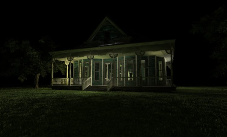 Queda bien el efecto ese de verse poco, da miedo. Con un poco de postproducción la luz esa del tejado se puede arreglar.