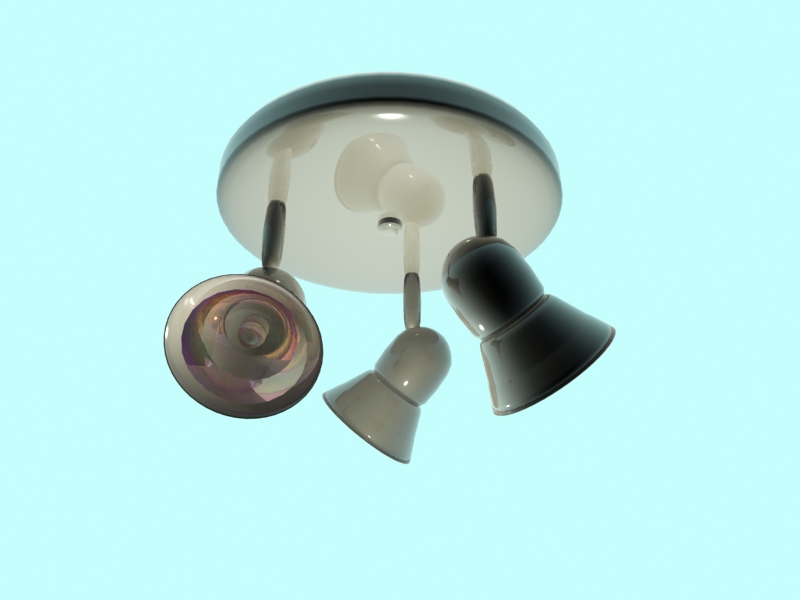 Es igual a la que tengo en el techo de casa. Lo único que le veo raro es que refleja la luz, y no debería ya que las luminarias tapan la lámpara dicroica, tendrías que apagar que afecte el especular, pero lo demás bien. Saludos.