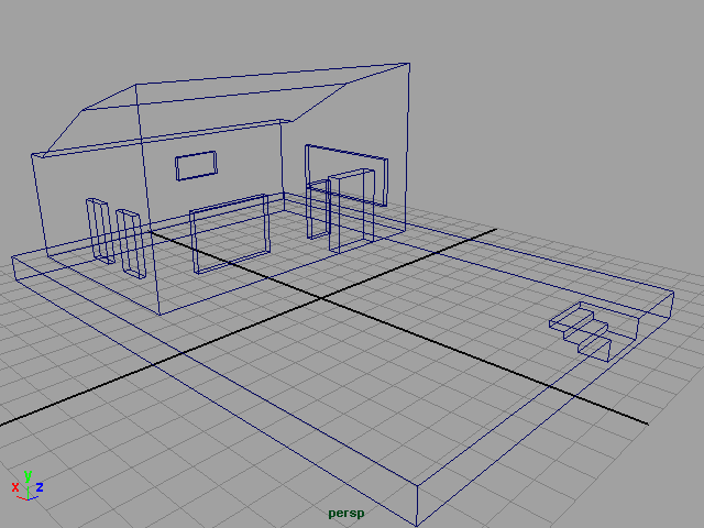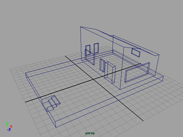 En el caso de la puerta, la hice cuando no había ventanas ni nada usando la herramienta Split polygon y borré los Edges que me sobraban, pero me pareció más cómodo para todas las ventanas hacerlo con diference de booleans.