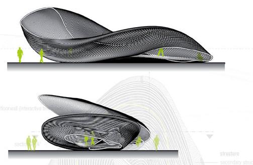 Escribí sobre cómo hacer este modelo en 3d con el ·d Studio, pero no he encontrado respuesta, a ver si hay más suerte. Es un edificio con formas orgánicas y el cerramiento es a través de listones flexibles (lamas) lo he intentado una vez tengo echa la superficie ondulada con una malla modificarla con lattice, pero no consigo este resultado que adjunto como imagen.