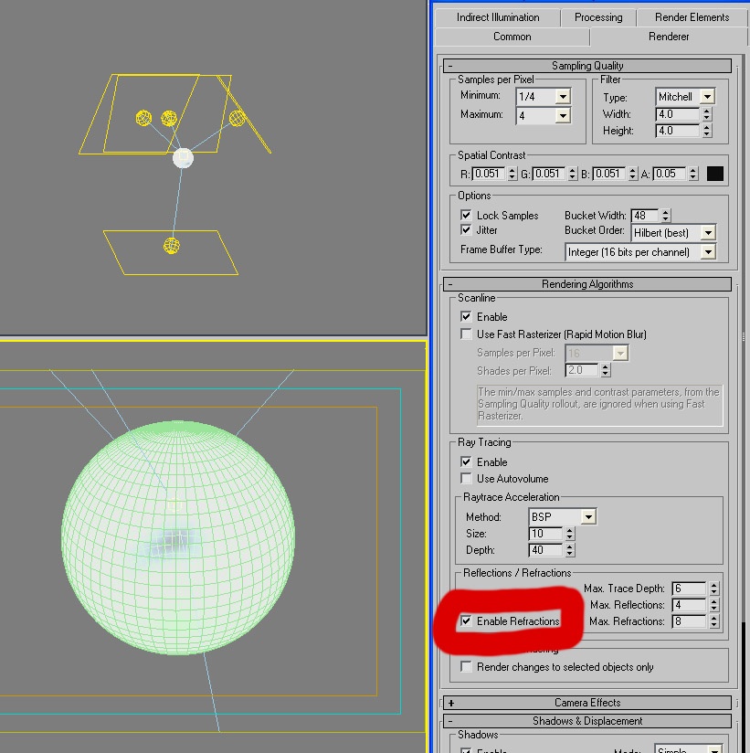 Buenos como verán en este render me han salido unos malditos puntos blancos que ya no sé que voy a inventar para quitárselo. Dándole para atrás y para adelante hast el cansancio si quito la marca en enable reflación se quitan, pero entonces me quedo sin refracciones?