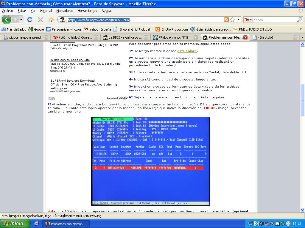 También una captura de un manual para usar el programa para testear las Ram y poder descartarlas como avería.
