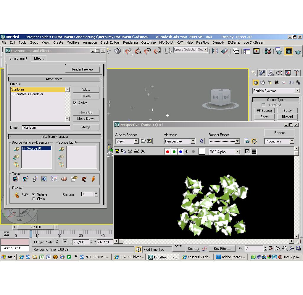 En mi caso cuando abro desde environment el Afterburn, cargo el emisor de partículas y tiro un render x default, pero me lo tira en tetaedros, rectángulos etc como hago para corregir esto?