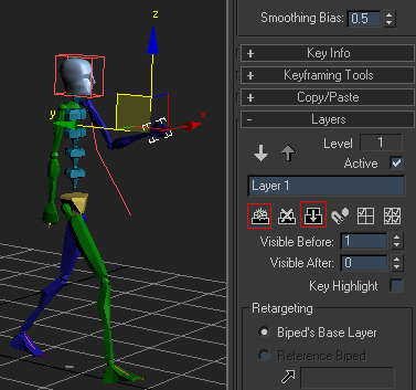 1.- Después de tener los pasos configurados como yo quiero, y para hacer otra acción fuera de los frames en la que se encuentran los pasos. Le doy al botón convert del ut Biped.