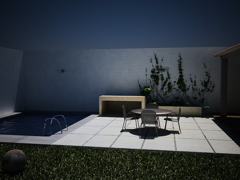 Hola. Pues la verdad no entendí que es lo que tengo que hacer para hacer que no halla reflexión en muros. En esta, le quite el agua y el muro sigue teniendo el color azul ahora del mosaico de la alberca.