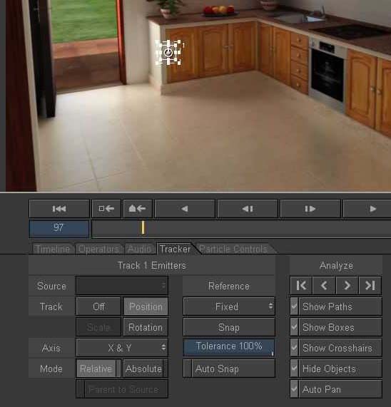Usando la herramienta de creación de partículas la colocas en el lugar donde quieres que comience el tracking. (procura que sea una zona de buen contraste y un par de píxeles que destaquen sobre los demás píxeles).