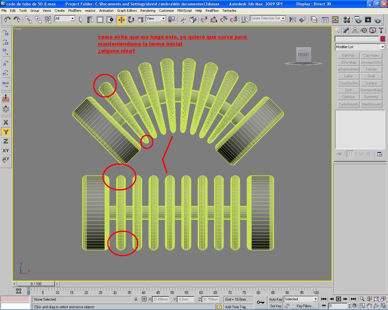 Hola. Creando un objeto me he visto con una duda que no veo cómo resolverla. Quizá será una chorrada, pero en estos momentos no veo como, lo que sucede es que, al añadir un modificador bend (curvar) me deforma el objeto, no me lo curva manteniendo su geometría. Mirad la imagen.