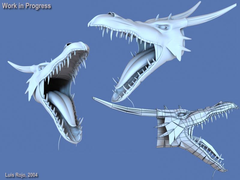 Buenas de nuevo. ¿os creíais que os habíais librado de mi? Pues no ha, ha, ha. Tras un breve lapsus, retomo al dragón, a ver si lo acabo ya y me pongo a hacer el escenario. Os pongo unos renders de su estado actual. Ha sufrido algunas remodelaciones, la mayoría son cosas que me habéis ido comentando por aquí, aunque hay algunas ideas que me habéis dicho, y que no me acababan de gustar por lo que no las he realizado. Aún falta meter algo más de detalle en las alas, sobre todo en las zonas de los codos y añadir algunas cosas en las patas (espolones,) pero a mi ya me gusta así, por lo que el concepto general se va a quedar así, que, si no lo acabo nunca, y tengo ya ganas de meterle los huesos.