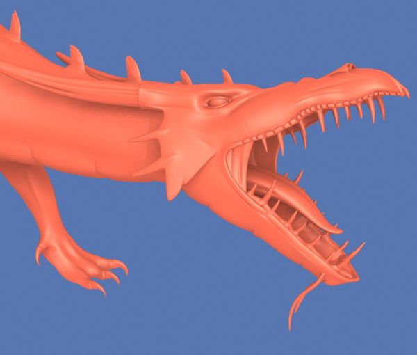 Buenas. Pues te lo estás trabajando mucho, a ver si te queda un dragón guapo. Me gusta cómo lo estas dejando, lo que si veo un poco raro es en el texturizado, las escamas no terminan de parecer reales, se ven muy planas, igual terminadas en punta en lugar de redondeadas quedan más chulas, no sé. También las veo un poco grandes, pero es cuestión de gustos.