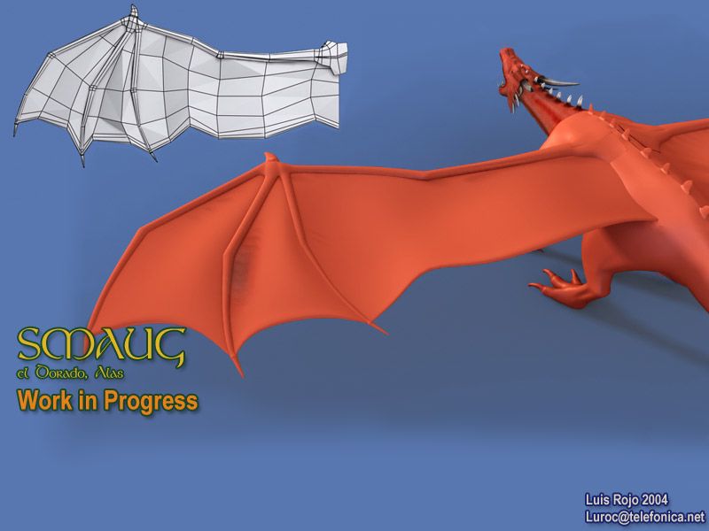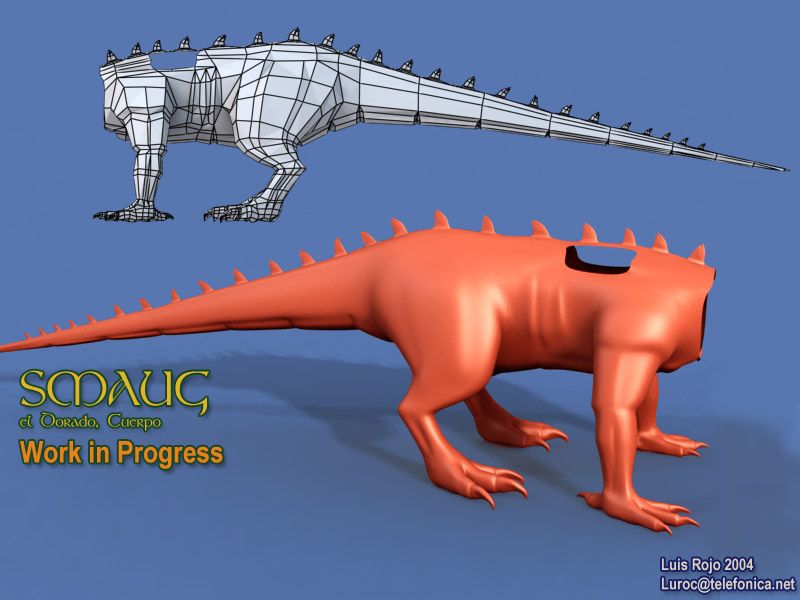 Si al final el modelado me acaba quedando bien (es decir, si yo me quedo contento, cosa bastante difícil, porque soy más pijotero que su tía), espero texturizarlo, y por supuesto, riggearlo y hacerle un par o tres de animaciones majas (nunca he animado un cuadrúpedo, y menos que vuele, puede ser un buen reto), y tal vez montar una escena en plan Smaug sobando sobre su tesoro, por ejemplo.