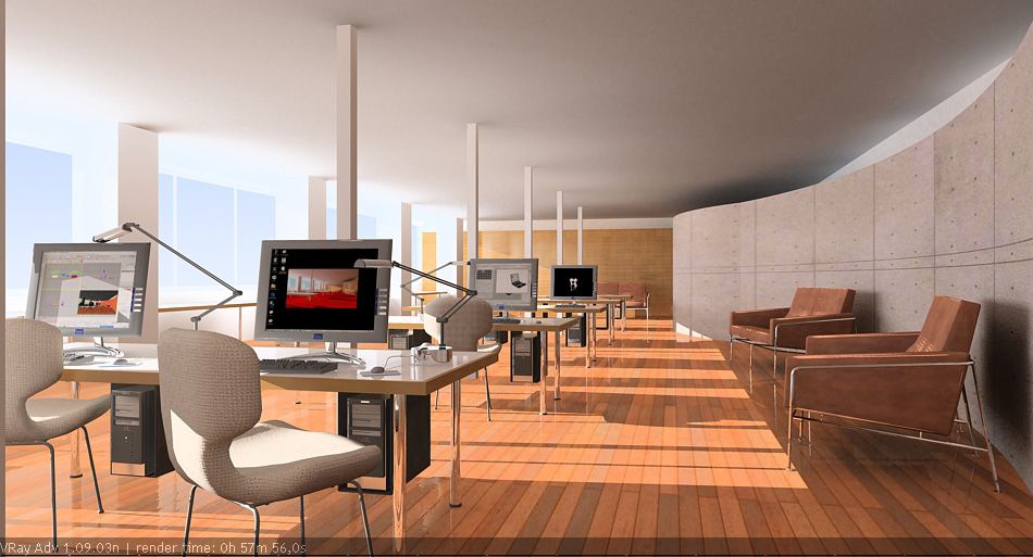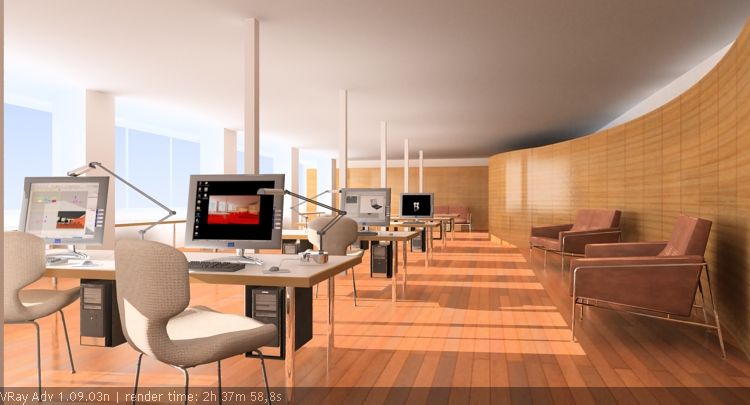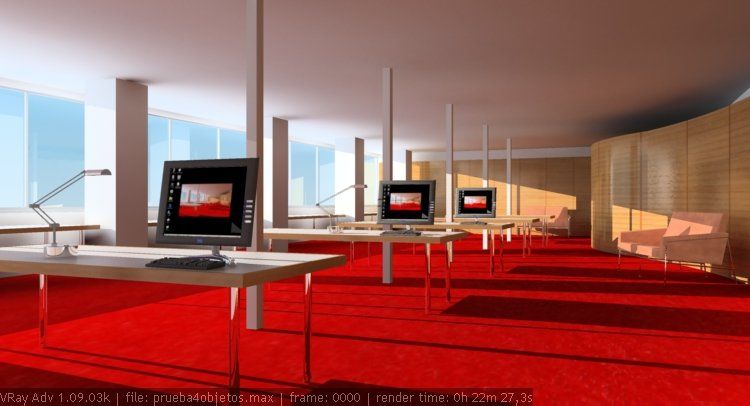 Tiempo de renderización total (generando el Irradiance Map y la imagen final) 30:50 en un Pentium 4 de 2,8 Ghz 531 Mhz 512 Ram y tarjeta video GeForce 4 de 64 RAM.