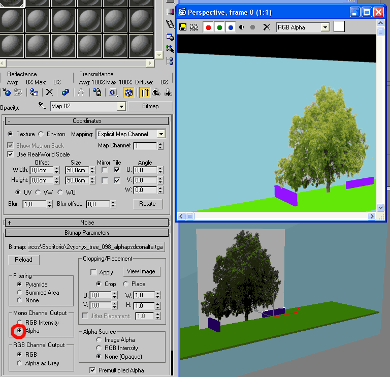 Hola a ver si alguien sabe cómo se humilde una alpha de un (*.tga) en transparente al aplicarlo sobre una malla, pero ojo no quiero que lo que se vea sea el material del objeto, quiero que sea transprente 100%, pondré un ejemplo, imaginaros un fondo donde quiero poner árboles (de fotografías) en primer término y tengo los árboles recortados en Adobe Photoshop luego estas texturas las mapeos en un plane y quiero que lo que no es árbol quede transparente pues eso es lo que no me sale en 3ds Max. Gracias.