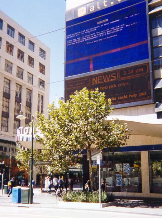 El virus sasser haciendo de las suyas en una oficina. Foto sacada de www.theinquirer.net. El mundo es azul.