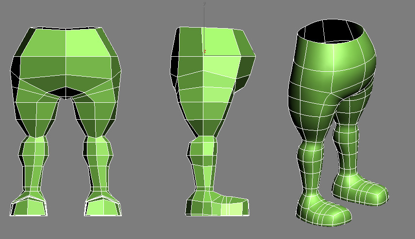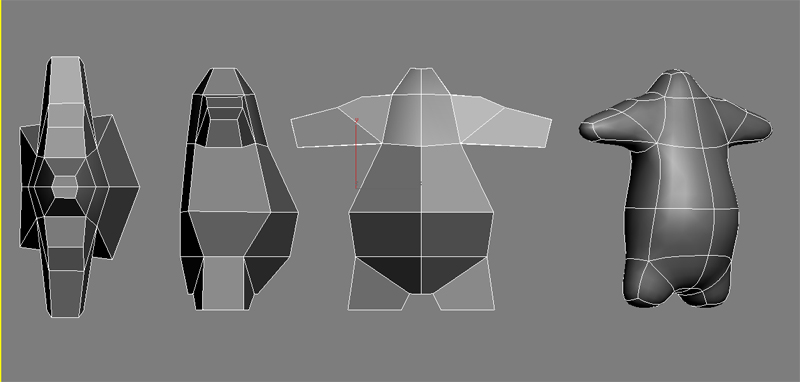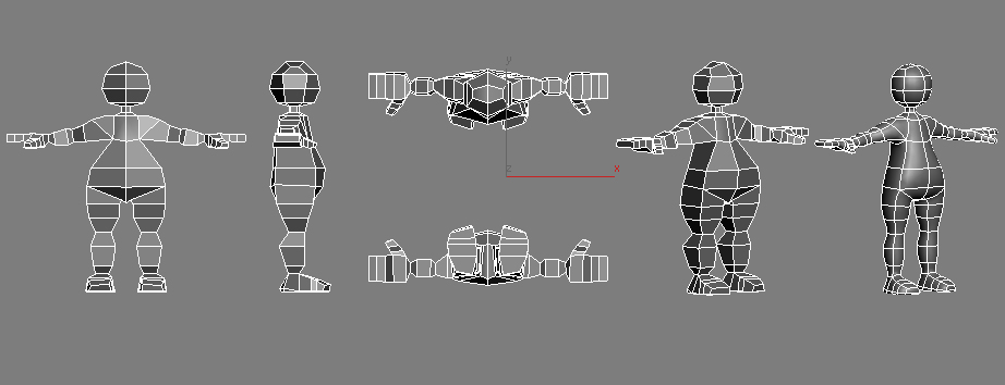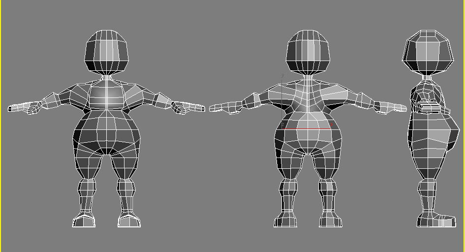 Inicio este hilo para publicar las dudas que me surgen al modelar un personaje sencillo para luego skinearlo. Es un ejercicio que siempre quise hacer bien y creo que por fin hay esperanzas de que con vuestra ayuda pueda hacerlo. He visto videotutoriales de box modeling y poly todo poly y he modelado alguna cosa medio decente (nunca la malla continua de un personaje) pero luego al modelar nunca se si cortar por aquí por, allá o cómo poner los Edge Loops y me desespero. No sé si esa arista debería ir diagonal o si la pierna se debe unir así o asado mejor al tronco para luego skinear. Esos detalles no los capto por mucha información que busco por aquí. Por eso me propongo este caso practico a ver si así publicando imágenes me podéis orientar o remitir a algún sitio que explique ese problema concreto y yo me busco la vida. Muchas gracias por adelantado.