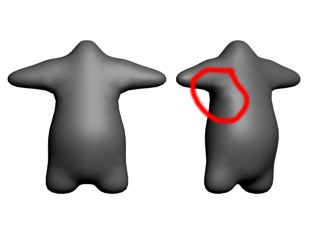 Problema 1 : estoy modelando el tórax y no sé cómo es mejor sacar los loops para el nacimiento del brazo. Me quedan esos vértices señalados que tocan 5 polígonos en vez de 4.