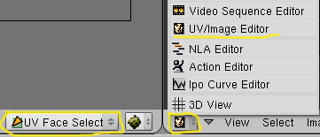 Ahora cambio a UV face select, divido la pantalla y abro el UV/Image Editor.