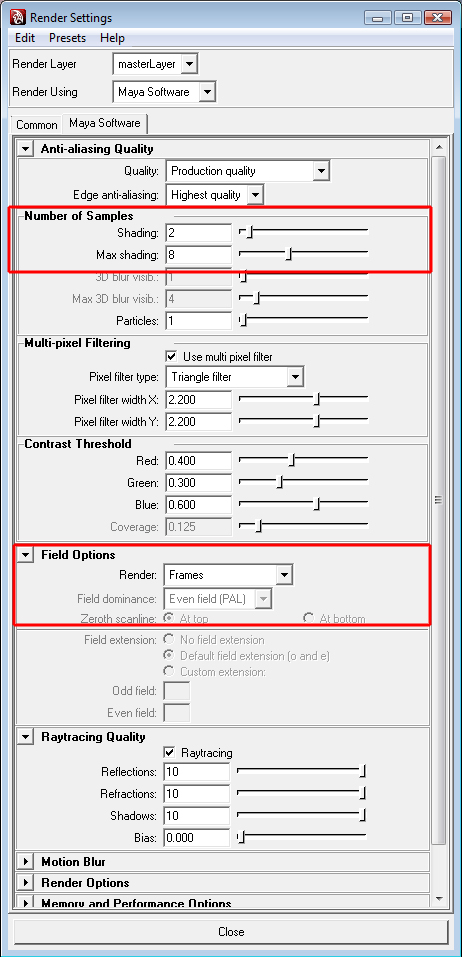 Hola, quería comentaros un problema que estoy teniendo en un trabajo. Se trata de una animación en la que unos cubos van mostrando unos videos en sus caras (algo, así como los de la sexta), el problema me viene en el renderizado de la animación, que me crea dientes de sierra en los cubos y eso que tienen un bevel. Estoy usando Maya 2009 y Maya software para el render (es muy rápido). Creo que el problema es de antialiasing, pero no sé muy bien cómo funciona esto así que, os dejo la imagen y los parámetros que he usado y si me podéis ayudar os lo agradezco.